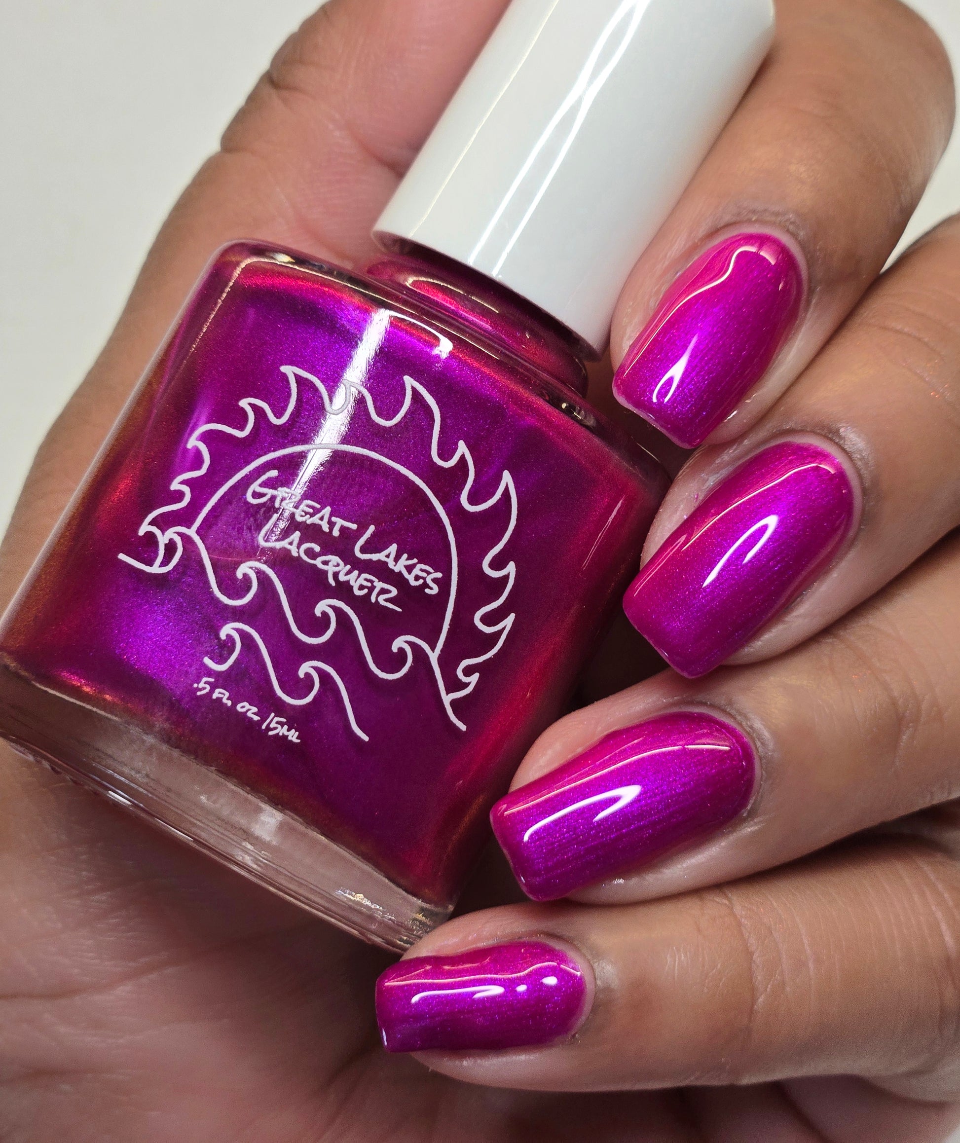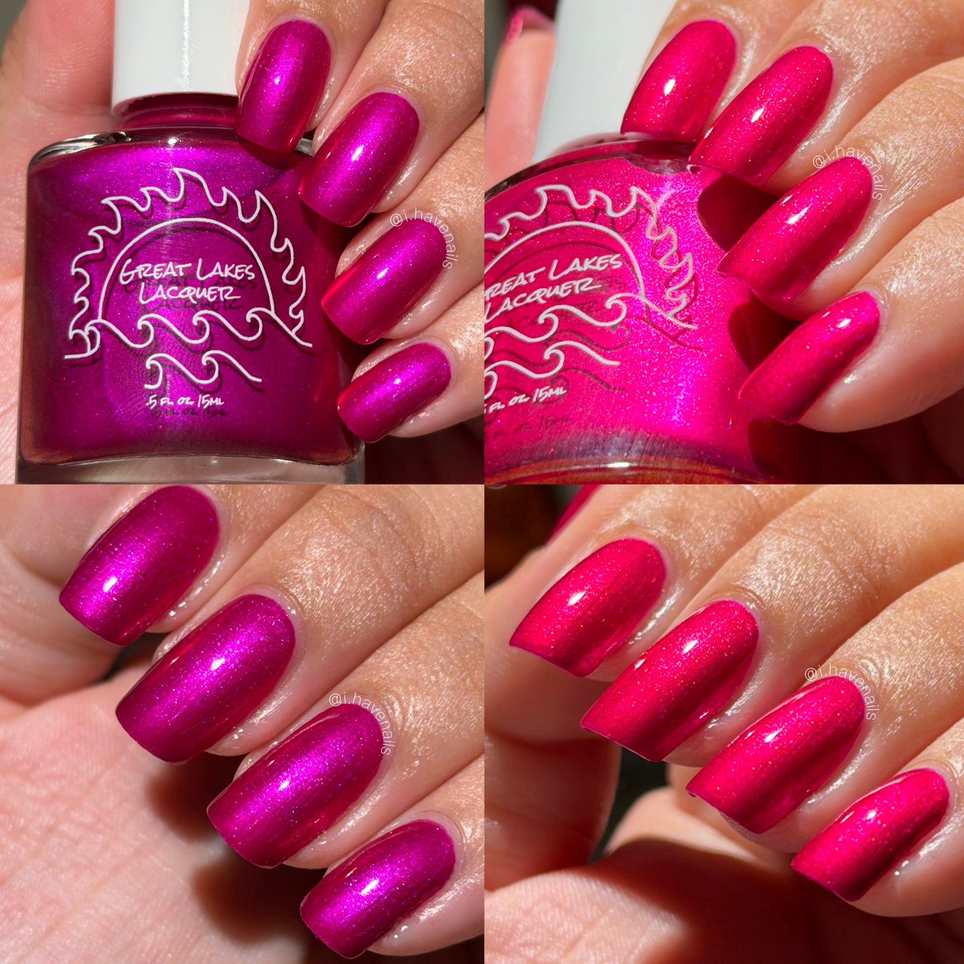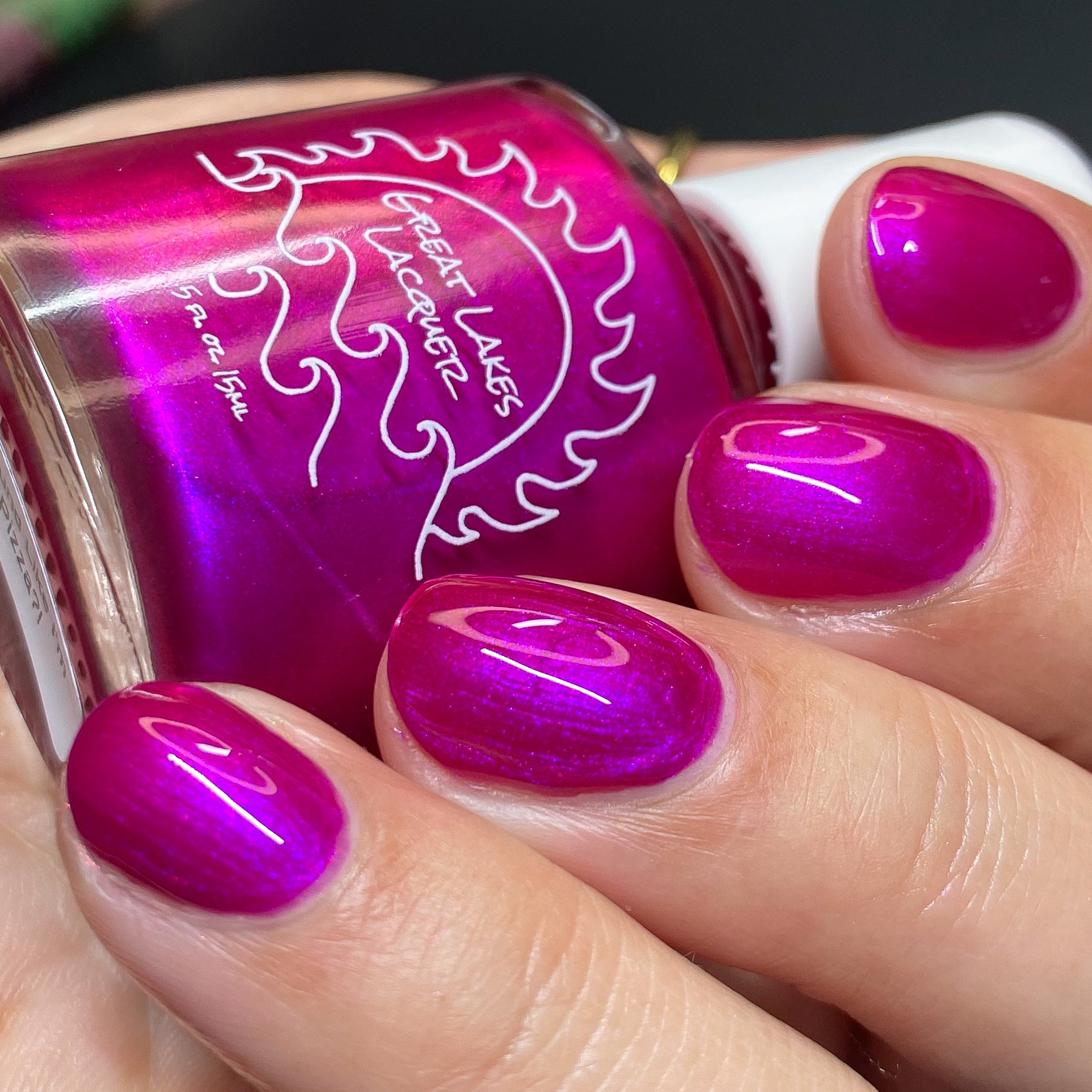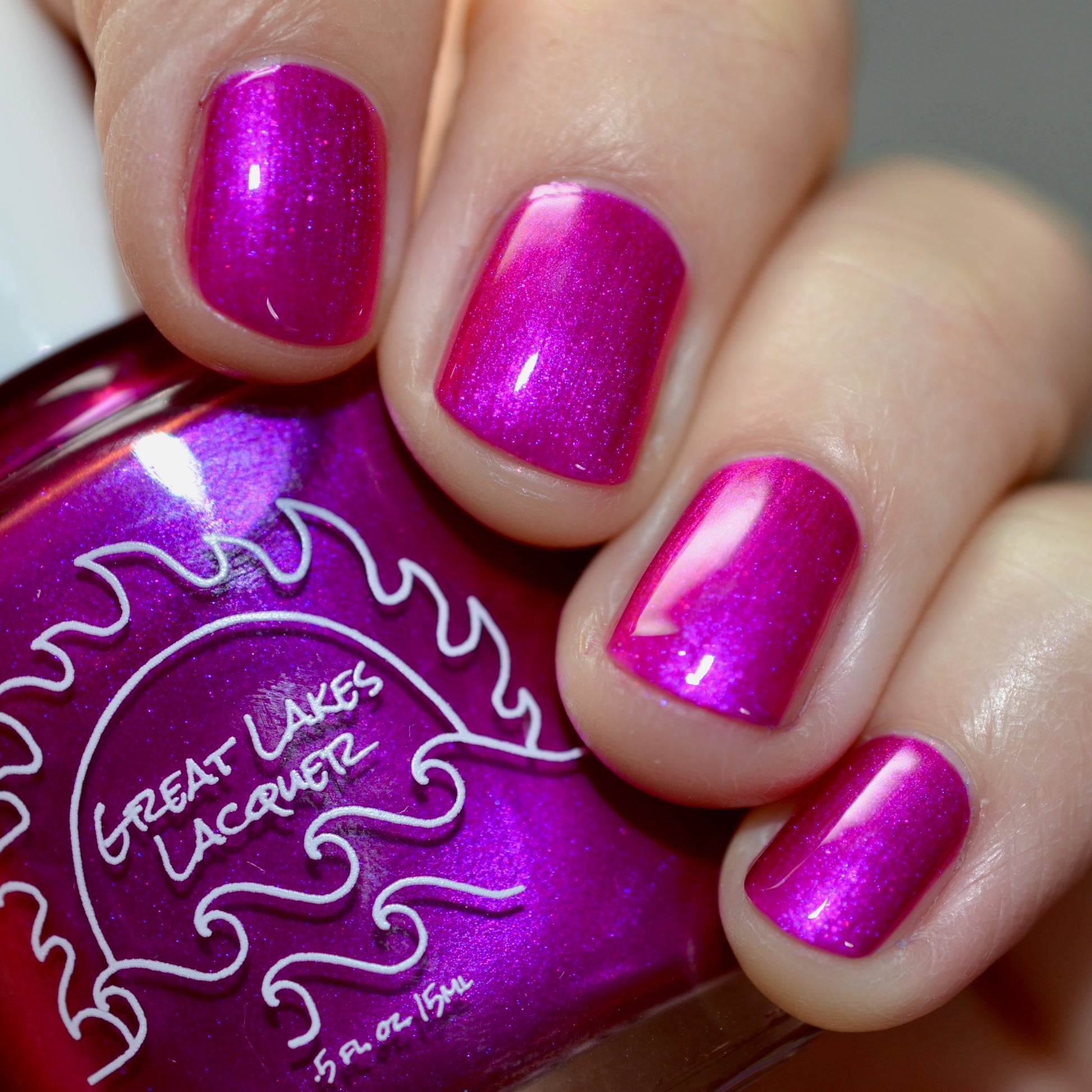An electric magenta with a purple to pink and red and orange shifting shimmer.